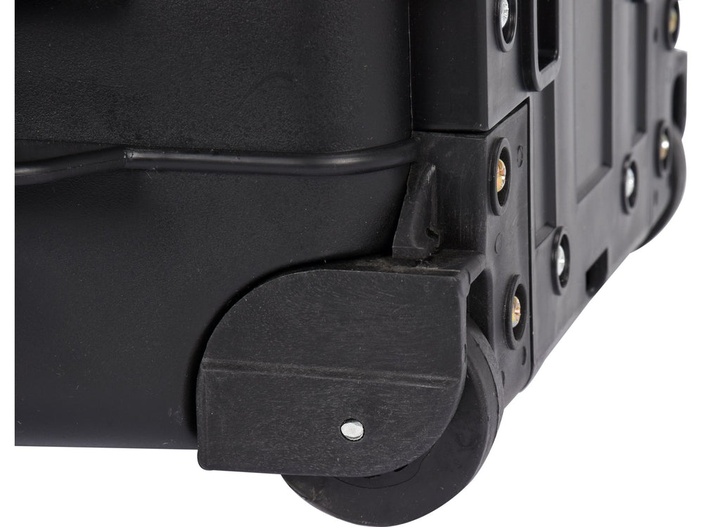 - Carcasa este echipată cu roți de transport și un mâner lung retractabil suplimentar.